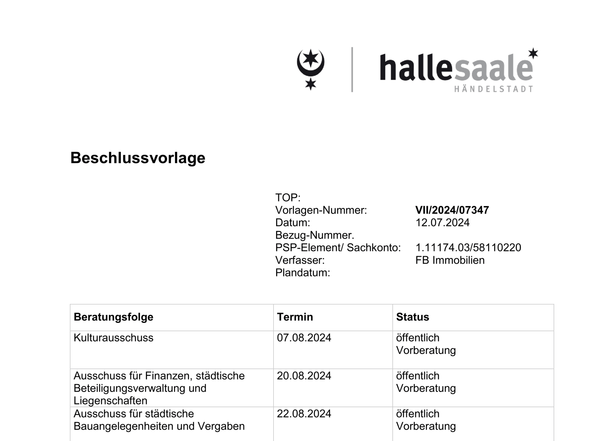 Am 28 August 2024 hat der Stadtrat Halle mit großer Mehrheit der Beschlussvorlage zur denkmalgerechten Sanierung des Mausoleums Osendorf zugestimmt …