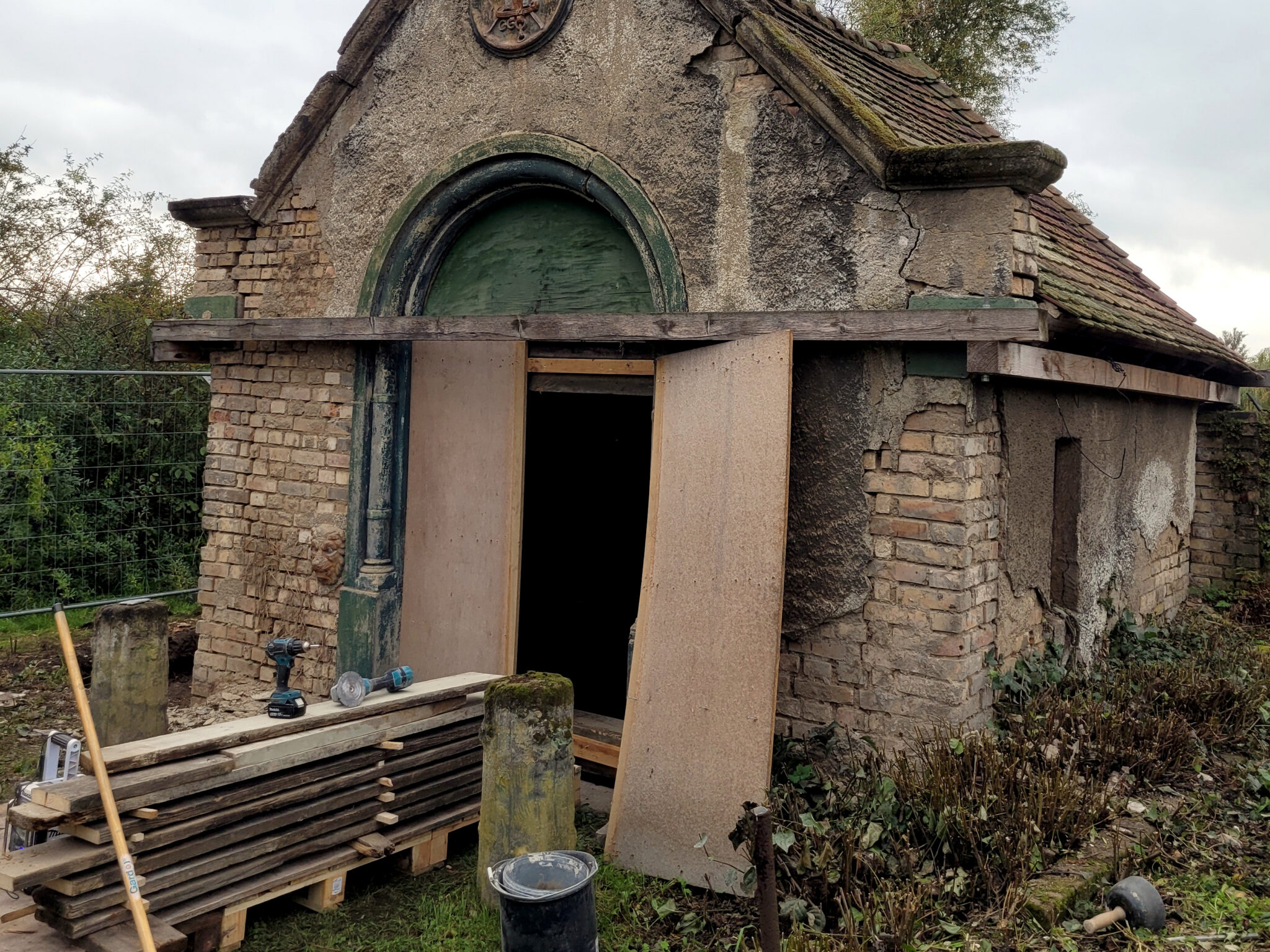 Am 6. Oktober 2025 haben die Sanierungsarbeiten am Mausoleum Osendorf begonnen …